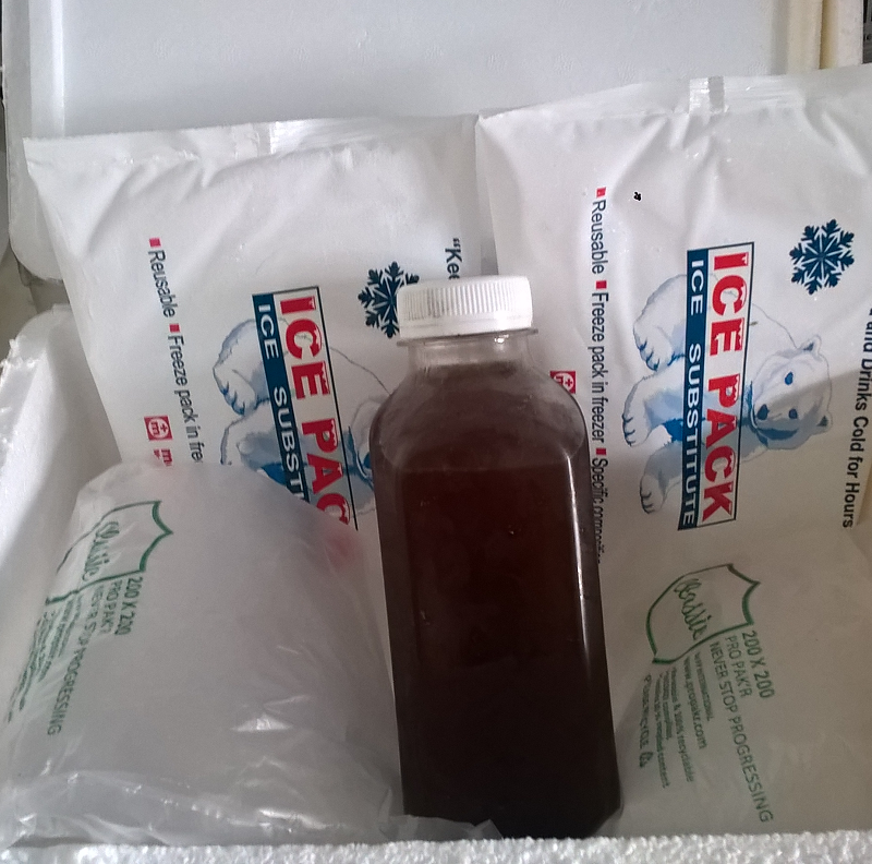 Τον γεμίζουμε με το προς εξέταση τρόφιμο (περίπου 100 γρ.), το πωματίζουμε και το σφραγίζουμε καλά με μονωτική ταινία.