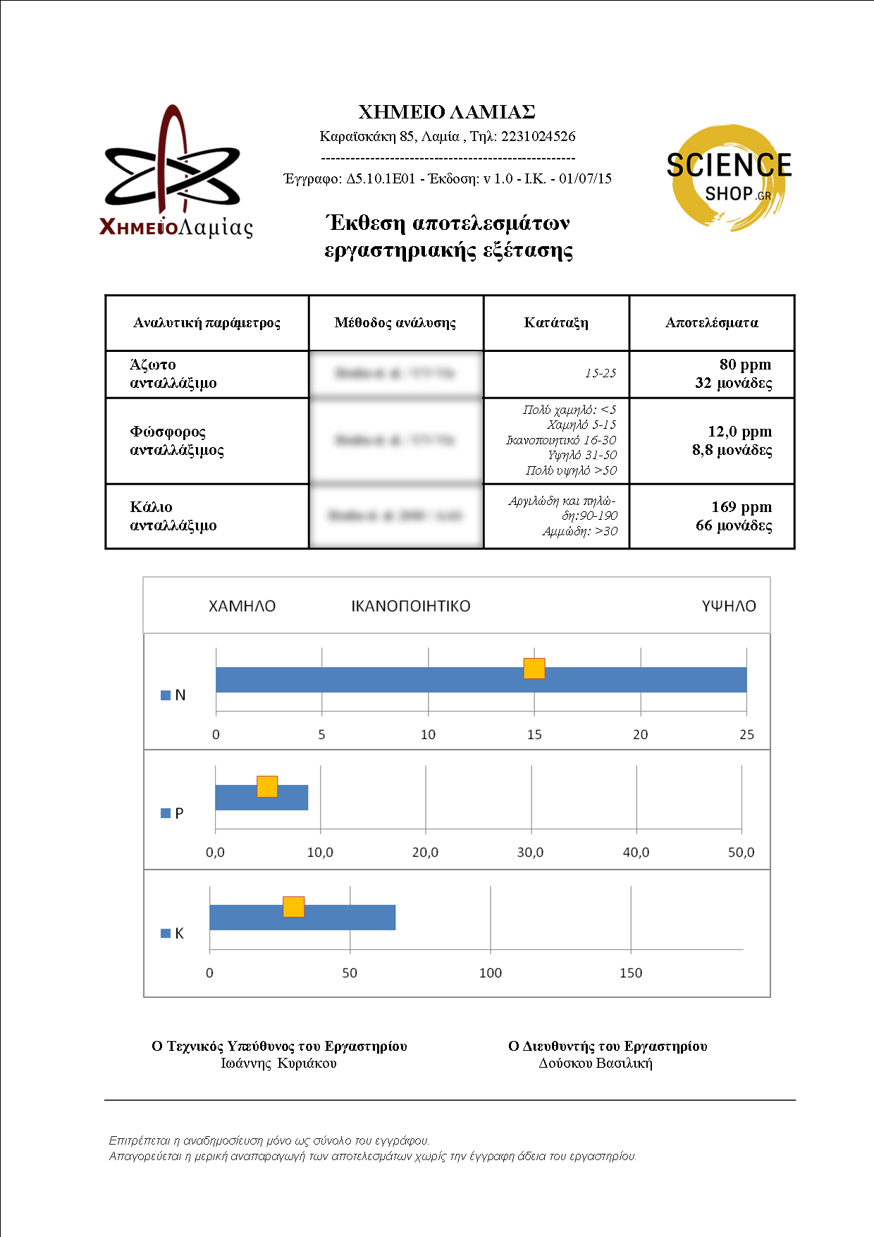 Στην τιμή συμπεριλαμβάνoνται το ΦΠΑ και η μεταφορά του δείγματος με κούριερ μέχρι το χημείο (έως 2 κιλά).